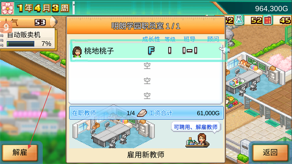 3、查看提升教师等级所需要花费的金额来判断教师教学质量,评估是否要解雇该教师。