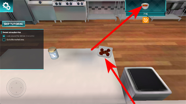 2、在职业模式厨房内,通过移动按钮,前往标记区域。