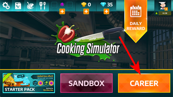 1、在烹饪模拟器主界面,点击CAREER选项,进入职业模式页面。