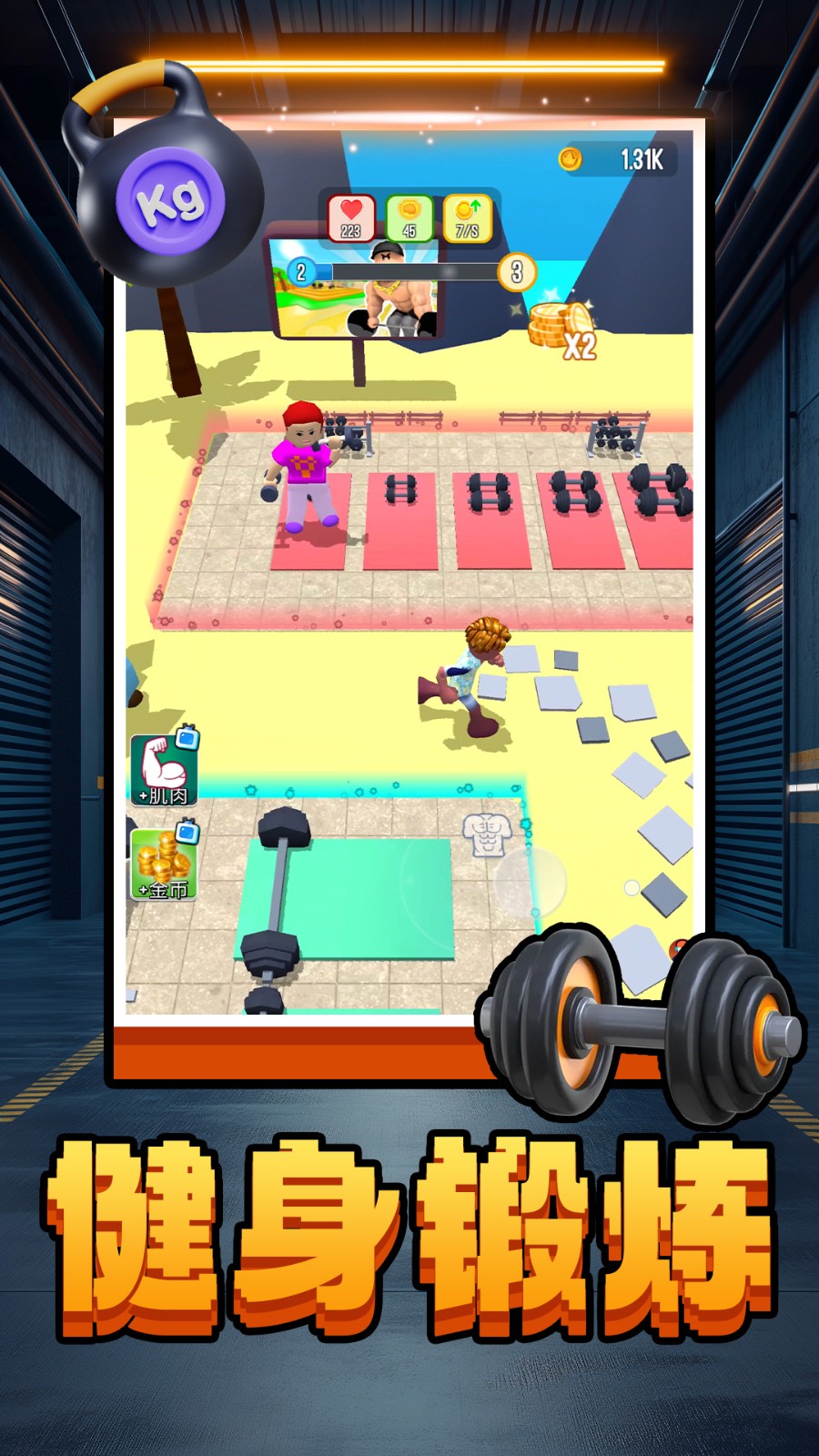 2、成长系统丰富:从初始瘦弱状态到肌肉轮廓显现,再到成为健硕猛男,每个阶段都有明显体型变化,力量耐力属性会随训练逐步提升。