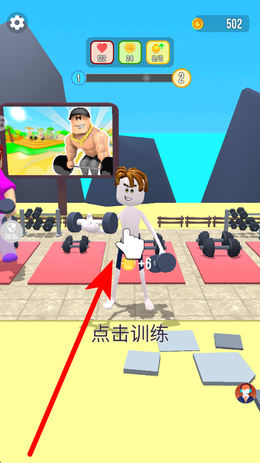 3、寻找教练要在场景中探寻教练的位置,找到后与教练产生互动,获取健身指导或开启相关的对战准备等,推进健身对战的进程。