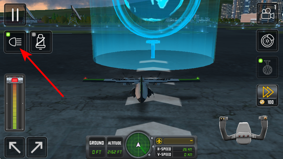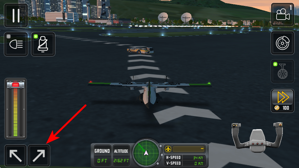 1、操控方向按钮调整飞机行进路线,这是地面移动的关键操作,调整后可让飞机沿跑道指引线行进,避免偏离安全路径。