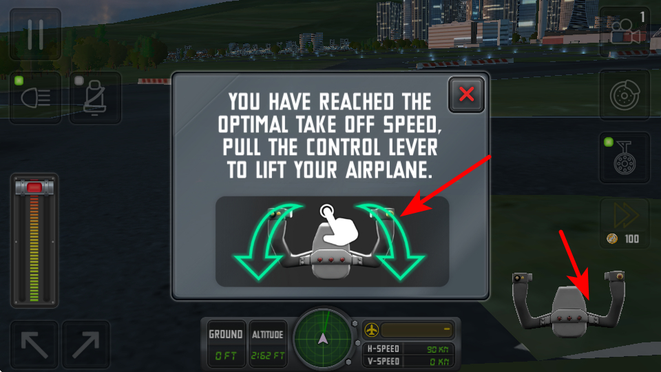 4、拉动操纵杆完成飞机起飞,这是进入飞行阶段的重要操作,拉动后可让飞机脱离地面、提升高度,进入航线飞行状态。