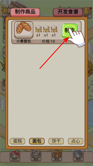 4、点击制作按钮可生产如小麦面包之类的商品,这是获取收益的核心操作,关注商品的价格和制作成本以实现利润最大化。