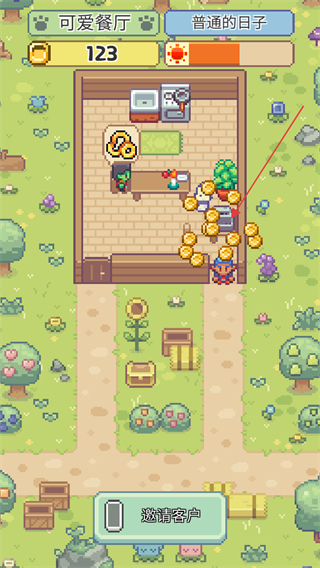 1、快速点击邀请客人积累能量条,充能完毕将成功招募到客人进店。