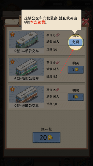 2、安排车辆时进入选车界面,优先选取星级高的车辆;不同车辆有票价、载客量、速度的差异,按需选择适配路线的车辆。
