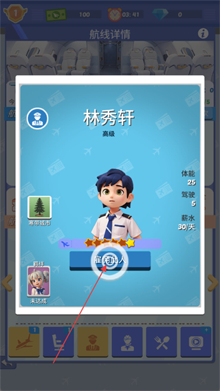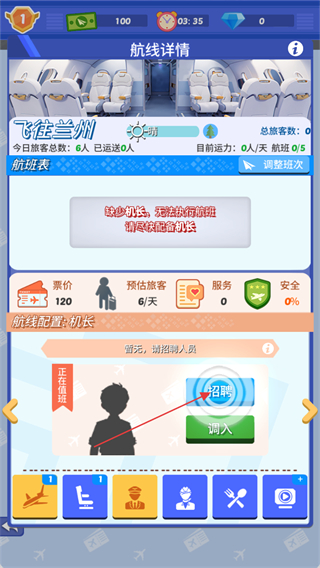 2、由于机场的航线缺少机长和乘务员,我们需要点击下方的招聘按钮进行招聘。