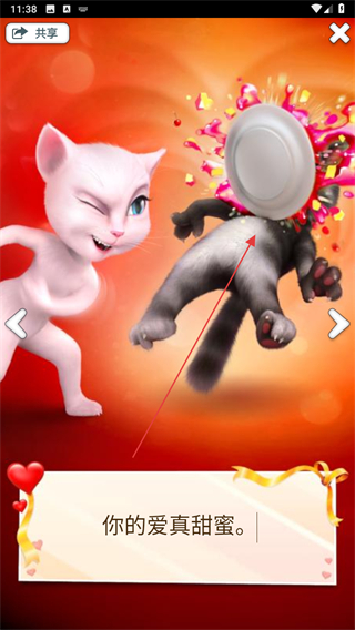 2、随着剧情推进,会出现有趣的情节,如汤姆猫被盘子砸,阅读下方文字你的爱真甜蜜感受趣味对话。