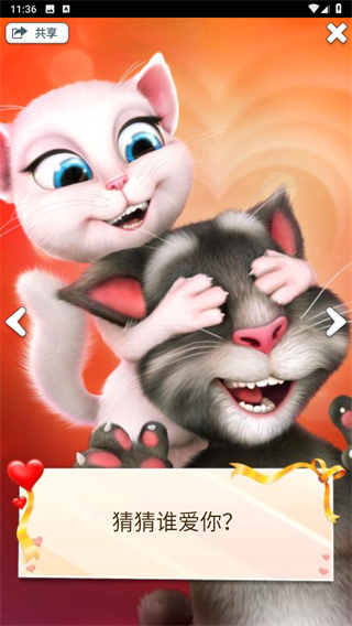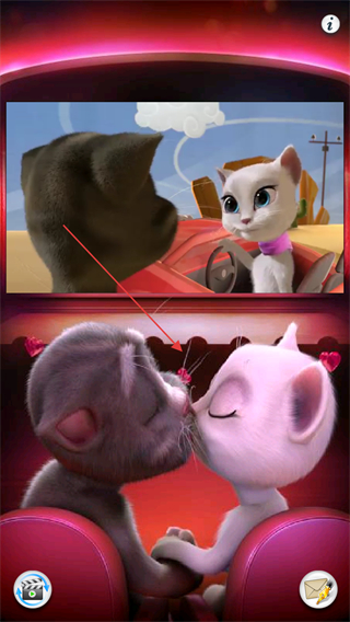4、在影院场景中,还能看到安吉拉和汤姆猫亲密互动,点击屏幕上的图标,可进行拍照分享、发送虚拟信件等操作。