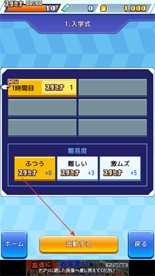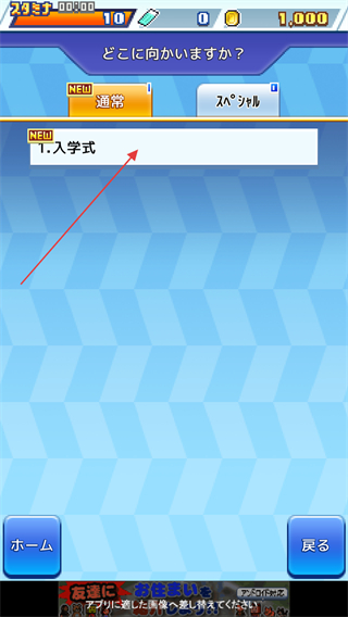 2、进入出动界面,选择通常的入学式后进入招募界面。