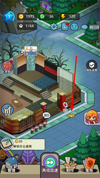 3、解锁更多道具后,场馆的惊吓度会逐步提升,游客进入后会产生更多金币,点击场景中的金币即可收取资源用于解锁新道具。
