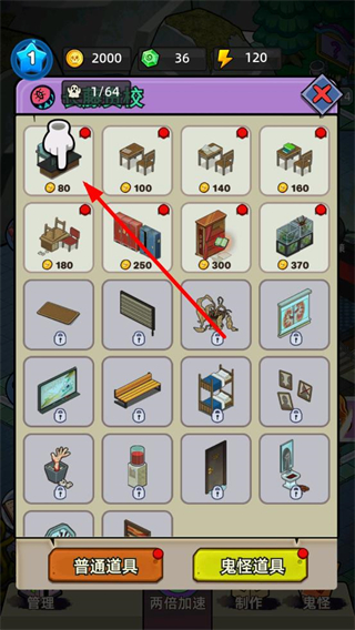 4、后续点击下方鬼怪选项,解锁带有特殊效果的鬼怪类道具,这些道具能进一步提升场馆的惊吓效率,加快资源获取速度以解锁更多内容。