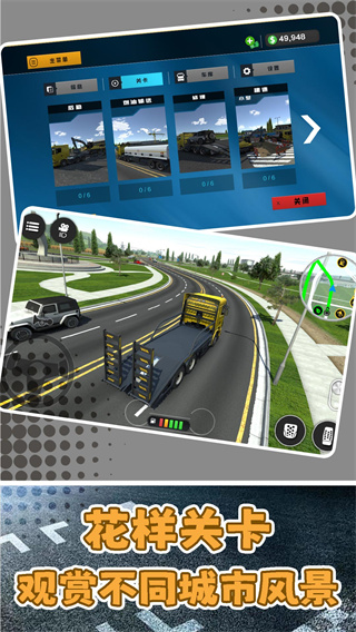 狂飙都市冒险中还有各样的任务目标,除了常规的运送货物之外,还能成为拖车开启救援活动,每次救援成功目标将获得丰厚奖励,真实模拟,超大地图自由驾驶,花样关卡,观赏不同城市风景。