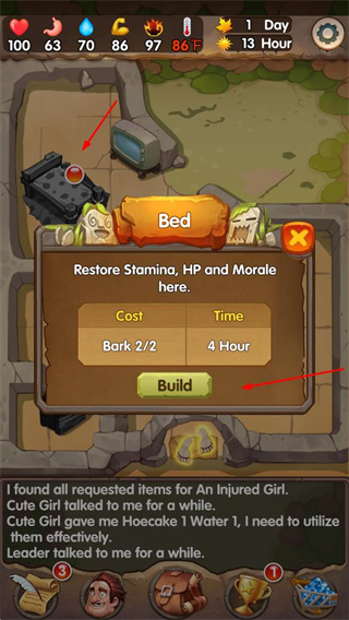 4、消耗资源建造设施,恢复体力、生命值和士气,提升角色生存能力。