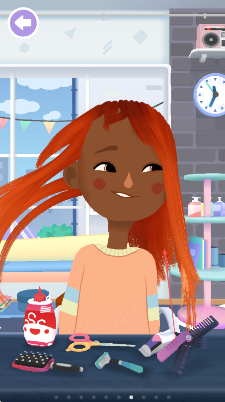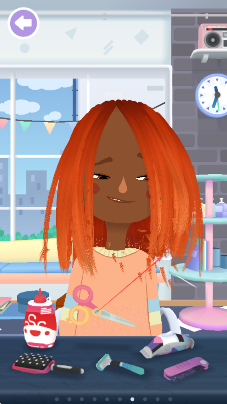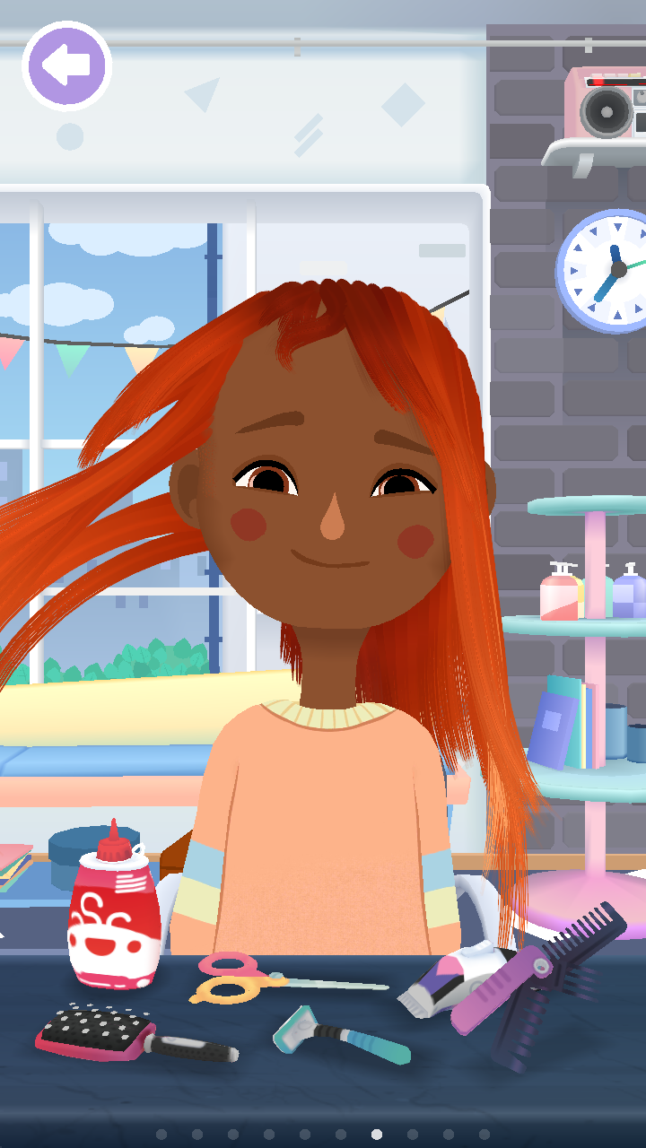 3、卡通视觉氛围营造:整体采用圆润可爱的卡通画风,角色表情生动、场景色彩柔和,理发过程中还有趣味动画反馈,让视觉体验充满童真与愉悦感。