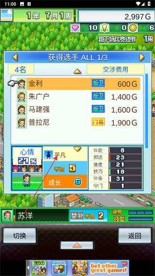 4、可以使用金币快速谈判,将选手心情提升到百分百则可以成功获得到新的队员。