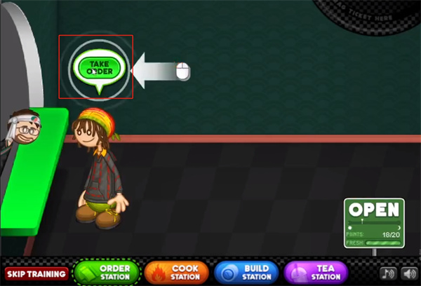 5、之后就可以跟随指示进行点击开启自己的寿司游戏之旅,制作出一个又一个的寿司订单,完成店铺的经营内容。