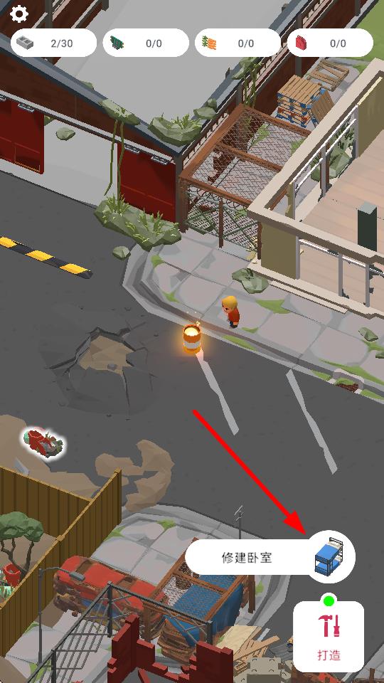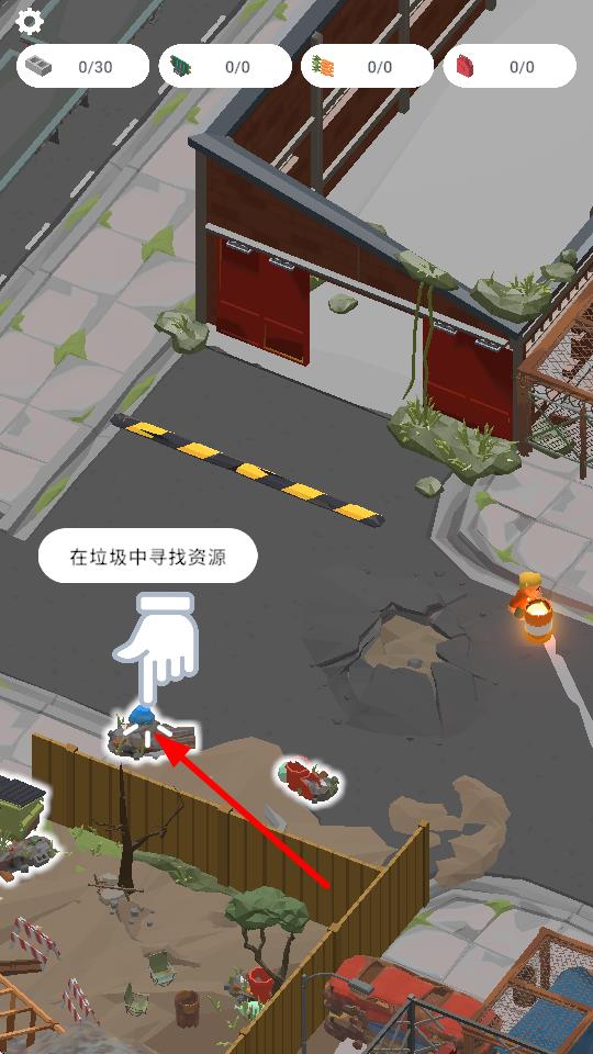 1、在场景中点击垃圾区域,可在垃圾中寻找资源,获取建筑材料等资源的重要方式,助力建造操作。