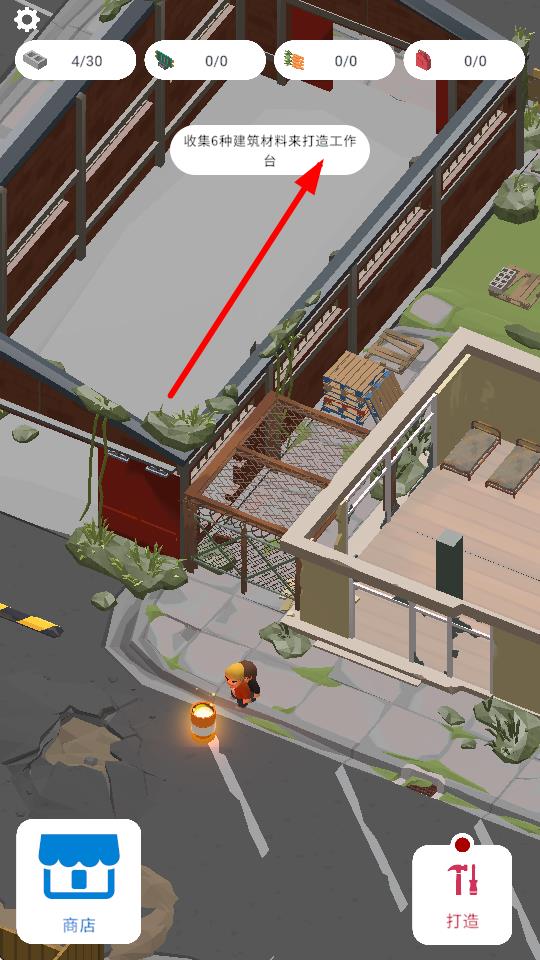 4、按照提示收集6种建筑材料,可用于打造工作台,工作台建成后能打造工具和建筑,助力基地发展。