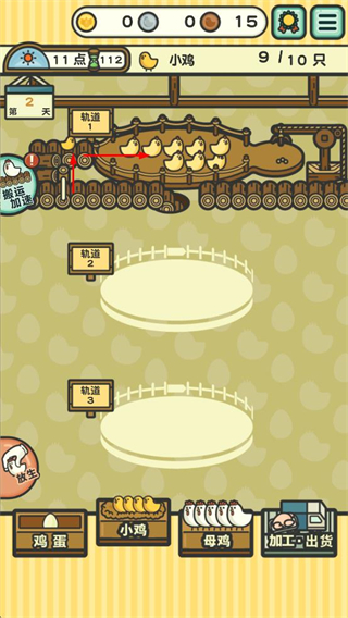 3、小鸡成长后,可通过加工出货设施将其加工为鸡肉产品,完成生产流程并获取收益。