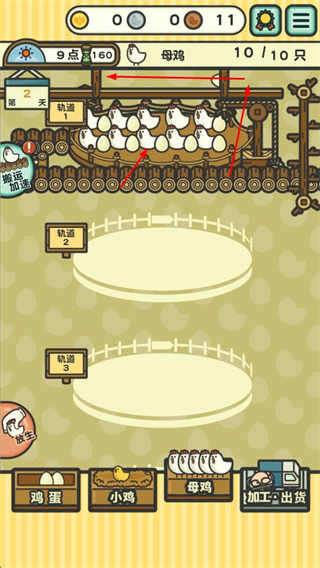 4、通过不同轨道的流转,实现母鸡→鸡蛋→小鸡→加工产品的产业链闭环,持续积累资源与收益,扩张养鸡场规模。