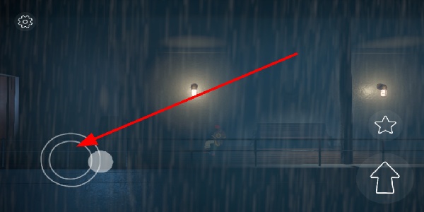 1、通过摇杆移动灵活控制角色在雨景场景中探索,在不同的建筑区域间移动,稳步推进游戏的逃生进程。