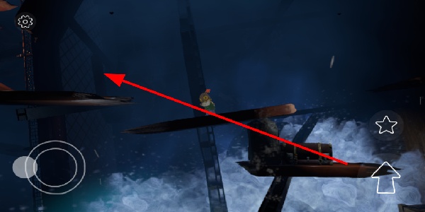2、点击跳跃按钮,让角色在场景中灵活跳跃,跨越各类障碍,前往新的安全区域,有效躲避海水的淹没。