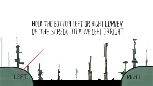2、在游戏操作引导界面,按提示按住屏幕左下角LEFT或右下角RIGHT区域,操控角色进行左右移动。