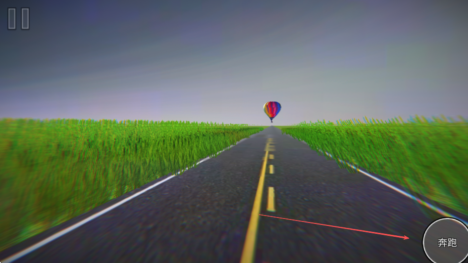 3、行进过程中,若需加速则点击屏幕右下角的奔跑按钮,加快靠近热气球的速度。