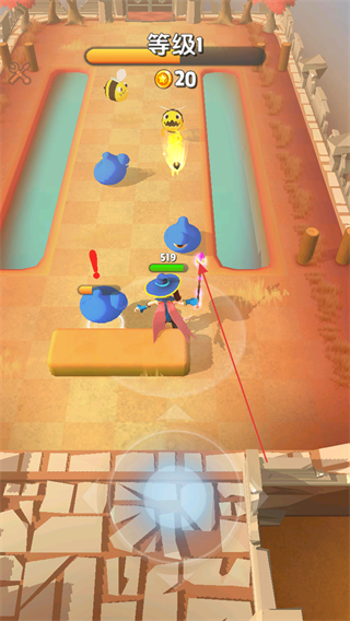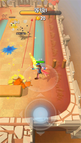 1、进入游戏查看等级等级1和金币数量0,通过左下角虚拟摇杆操控角色移动。