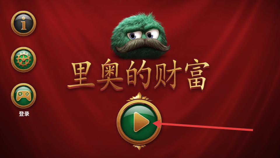 1、进入里奥的财富游戏,点击主界面绿色带三角的按钮,开启冒险。