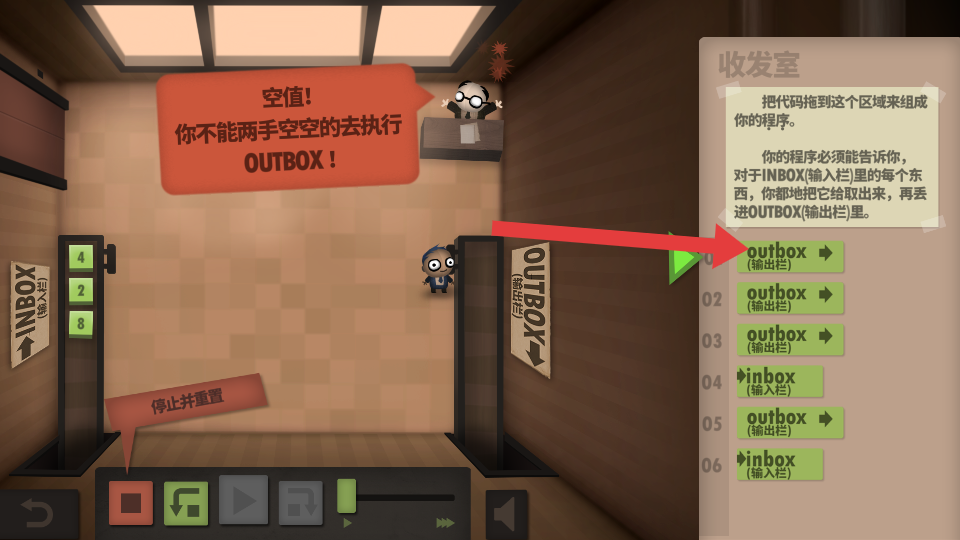 2、按照指示,将outbox输出栏模块拖入对应的程序行,程序能正确执行数据输出,避免出现空值错误。