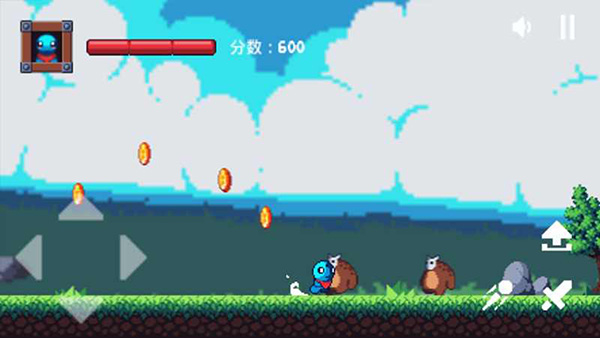 采用经典像素风格打造画面,角色、场景与敌人都以像素元素构建,视觉效果简洁怀旧又不失可爱感,色彩搭配和谐,细节刻画贴合冒险主题,让闯关过程更具沉浸式氛围。
