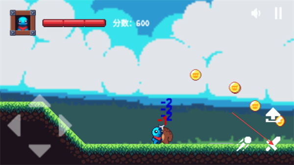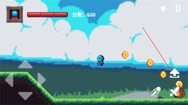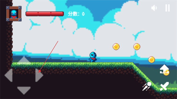 2、进入关卡后,通过左侧方向键操控角色移动,收集场景中的金币,同时推进关卡的进程。