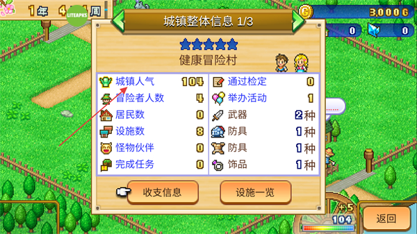 4、在城镇整体信息菜单中,可以看到当前的城镇人气和收支信息。
