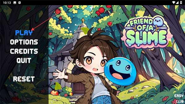 1、在史莱姆之友幸存者主界面中找到PLAY选项并点击,即可进入游戏的冒险场景开启后续的探索进程。