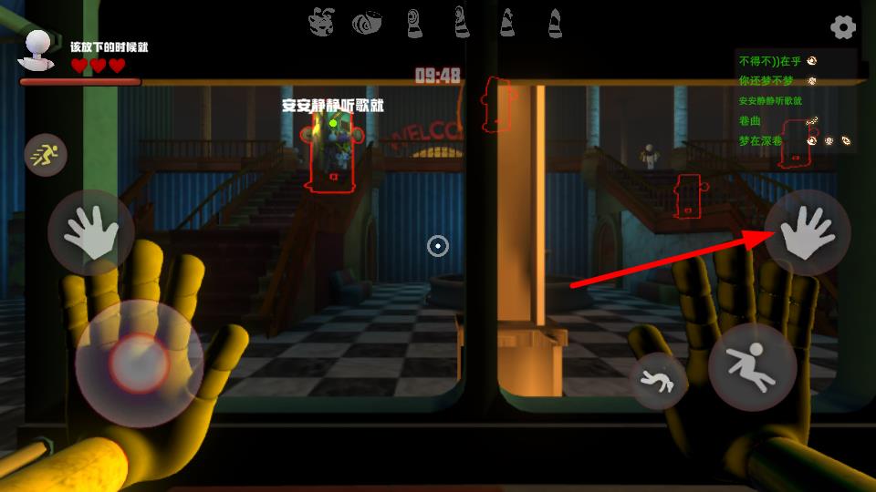 2、在场景中遇到互动提示时,点击右侧手掌按键,可与场景元素互动,这是推进游戏进程、解锁内容的关键操作。