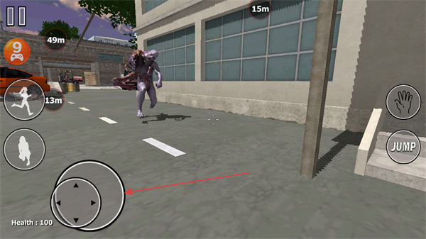 4、操作移动键,调整角色位置,远离僵尸,向安全区域移动。