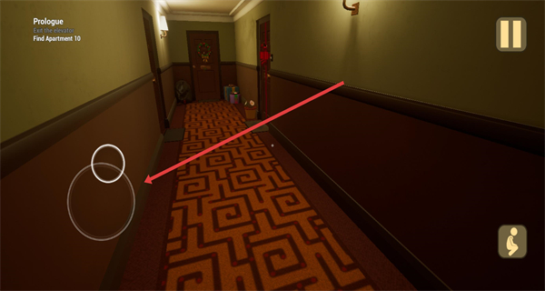 2、进入走廊场景后,通过左侧的虚拟摇杆控制角色移动,前往目标区域,推进序章的解谜进程。