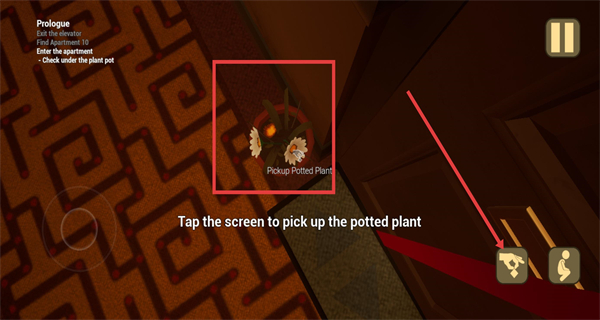 3、移动到盆栽位置后,点击屏幕拾取该盆栽,同时可查看盆栽下方的物品,获取解谜所需的道具。