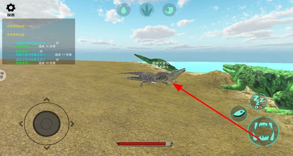 2、使用撕咬技能,操控恐龙发动撕咬攻击其他生物,造成伤害,获取资源和经验。