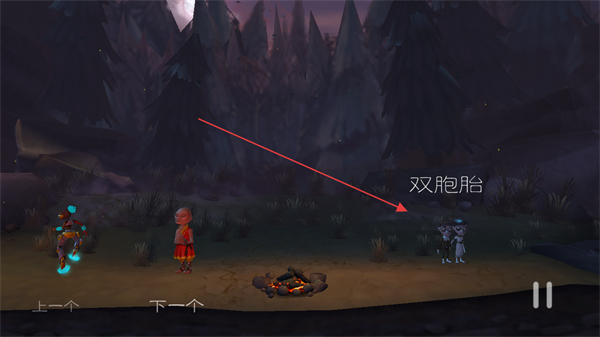 4、查看新场景中的双胞胎角色提示,继续推进冒险剧情。
