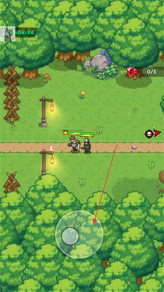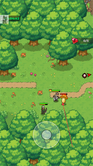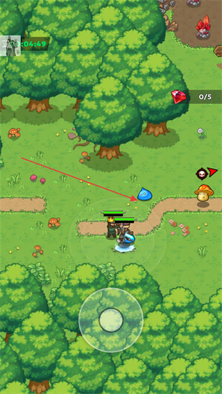 1、通过虚拟摇杆操控角色在森林场景中移动,探索地图,寻找任务目标和资源。
