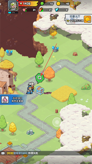 3、场景中带放大镜标识的宝箱是资源交互点,点击该宝箱可获取对应资源,同时推进当前击杀10只粉色史莱姆的任务进程。