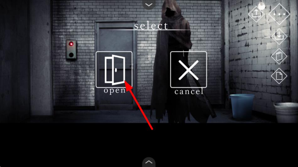 3、当出现门的互动选项时,点击open可打开门,进入新的场景,继续游戏探索,这是解锁新区域的关键操作。