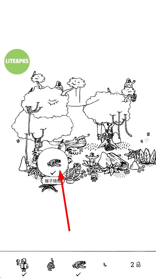 2、找到猴子骑骑目标,通过点击标记完成识别,找物操作考验玩家的观察力,每找到一个目标可推进游戏进度。