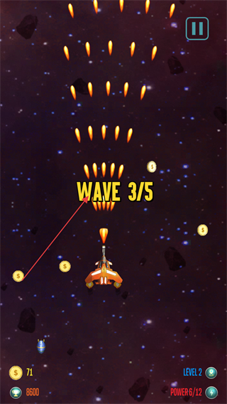 1、通过滑动屏幕空白区域控制飞机左右上下移动,躲避小鸡发射的导弹并攻击他们。