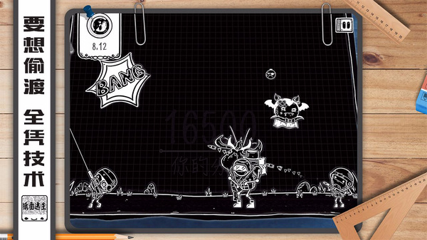 1、手绘风沉浸感官体验:采用独一无二的黑白手绘风格,方格纸背景设计巧妙,搭配可爱的外星人形象与俏皮音乐,从听觉层面构建出新奇有趣氛围。