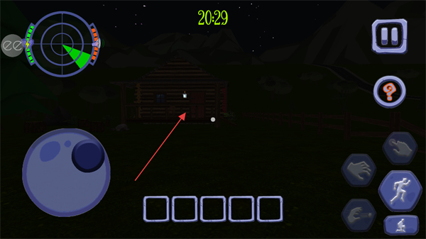 4、等待场景切换至夜晚,继续操控角色移动,靠近木屋区域推进后续流程。