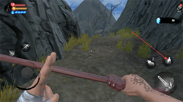 4、战斗过程中可使用界面右侧图标按钮进行后侧闪避的操作来辅助作战,战斗结束后可在当前场景继续探索后续的游戏内容。
